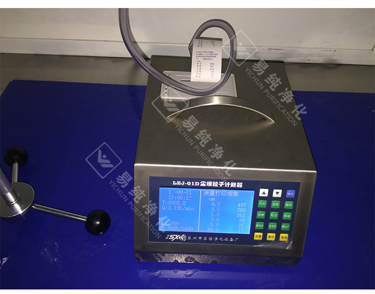 在吹淋室外安裝壓差表,將其測(cè)管通過(guò)能密封的孔置于吹淋室內(nèi)距地面1m高,距內(nèi)壁不小于500px處。關(guān)好吹淋室的門,啟動(dòng)吹淋室的風(fēng)機(jī)。15秒鐘后測(cè)量室內(nèi)外壓差。重復(fù)測(cè)量三次。